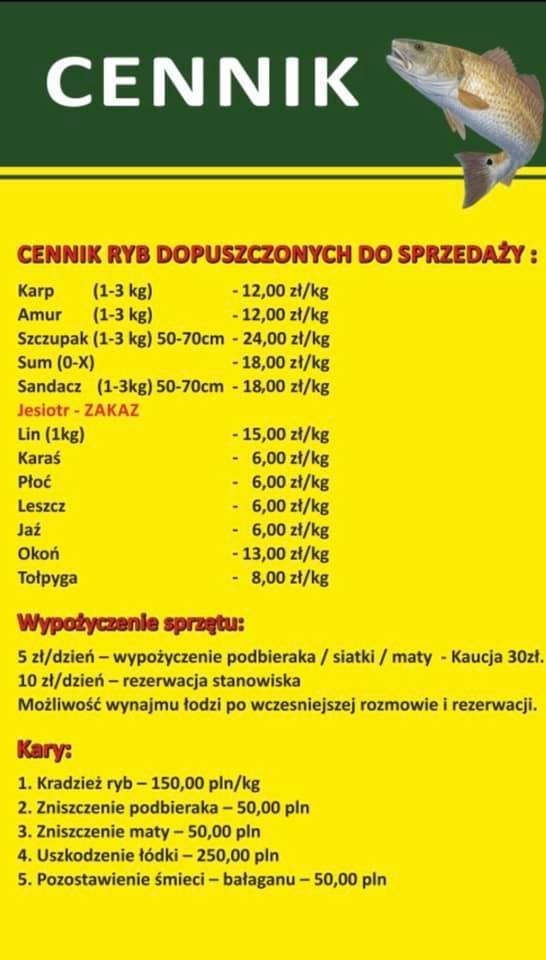Szczupak, okoń, sandacz, karp, amur, lin, karaś, tołpyga, boleń, leszcz, jaź, jesiotr - naprawdę duże okazy!