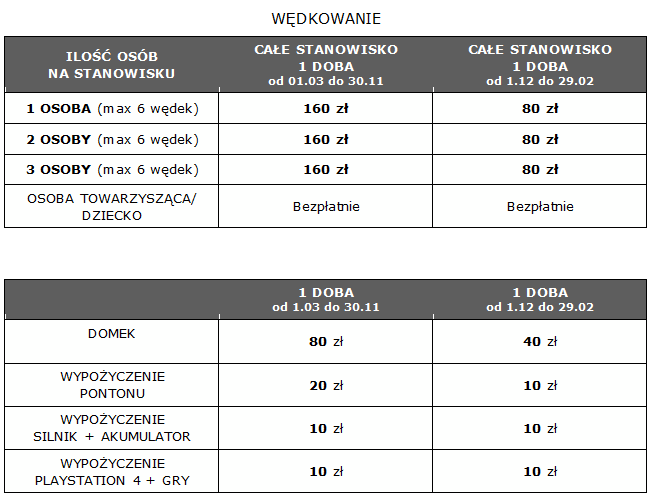 Przy tym stanowisku istnieje możliwość wynajmu domku. Dodatkowo na stanowisku można bezpłatnie korzystać z energii elektrycznej i murowanego grilla.
