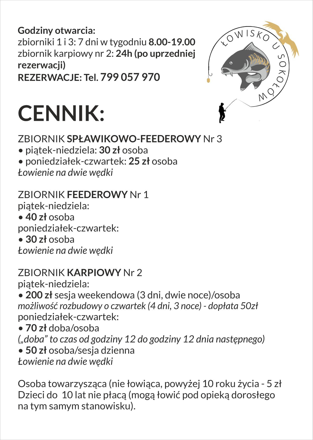 Łowisko „u Sokołów” to nowa, kameralna woda na mapie Mazowsza. Stawy powstały w latach 80-tych, jako łowisko oddane zostały do dyspozycji wędkarzy w sierpniu 2021 r. Łowisko znajduje się w bliskiej okolicy Warszawy (25 min. drogi od Wilanowa), nieopodal trasy A2 i S17. Łowisko składa się z trzech oddzielnych stawów.