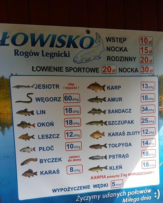 Cennik (opłaty za wstęp należy uiścić przed wjazdem na łowisko):