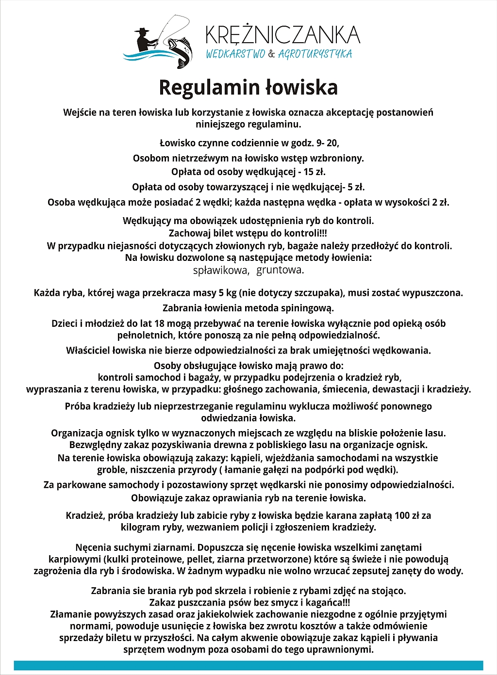 Na terenie łowiska znajduje się restauracja oferująca m.in. świeżo wędzone ryby na drewnie owocowym.